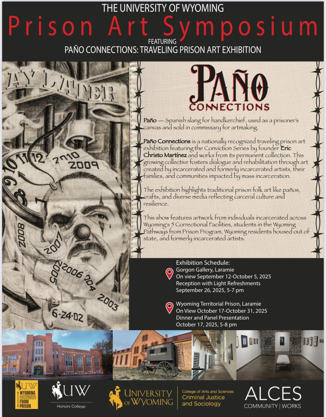 The exhibition highlights traditional prison folk art like panos, crafts, and diverse media reflecting carceral cutlure and resilenc. This exhibition highlights artwork from individuals incarcerated in Wyoming’s five correctional facilities, participants in the Wyoming Pathways from Prison program, Wyoming residents housed out of state, and formerly incarcerated artists.