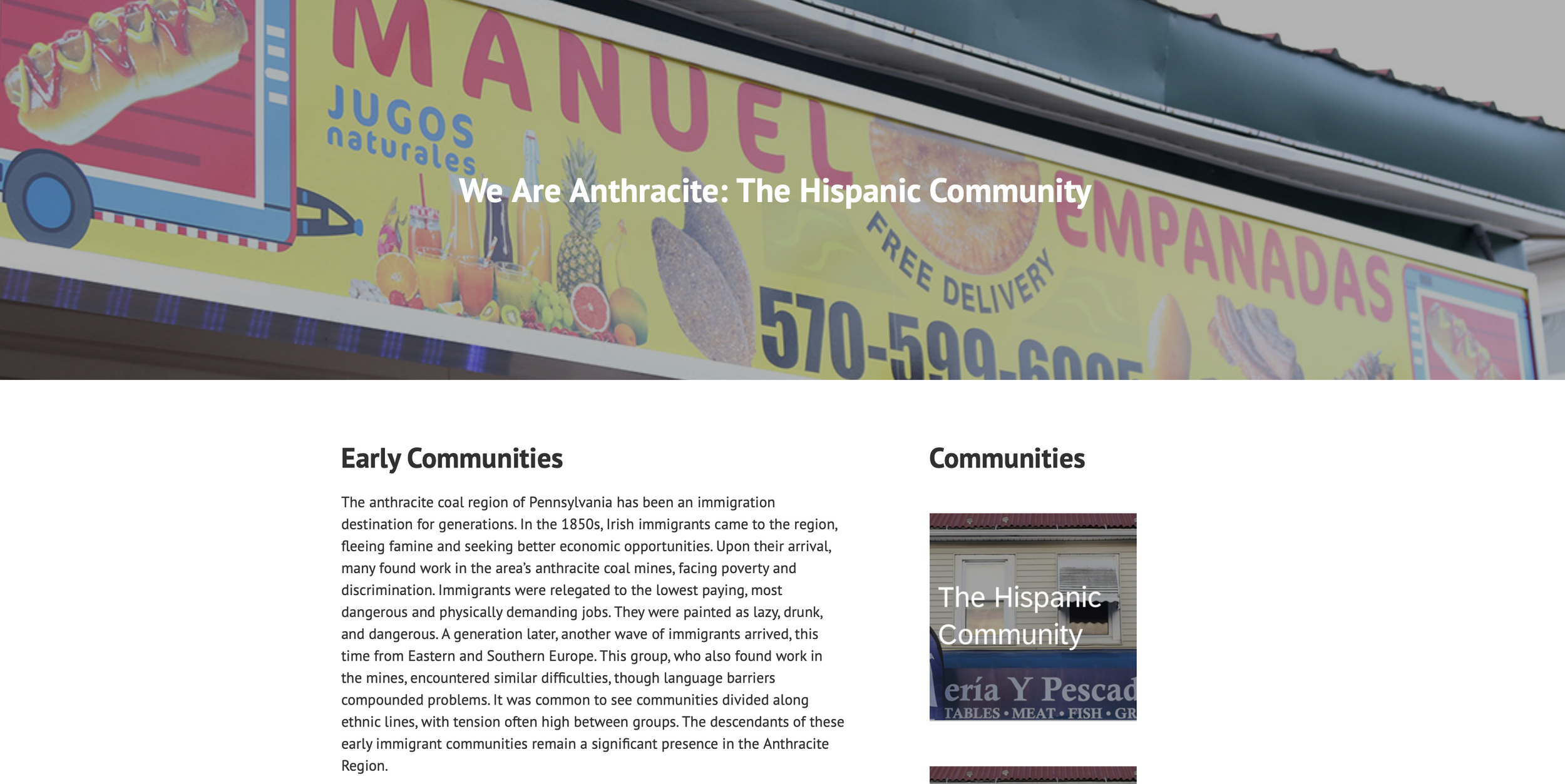 We also love doing work on a national scale. Alces partnered with the Anthracite Heritage Museum to help tell the layered story of immigration, migration and labor in Pennsylvania’s anthracite coal region. Working alongside community members, we co-created an online exhibition highlighting the contributions and lived experiences of Hispanic communities in the area today. For generations, this region has been a destination for immigrants—from the Irish in the 1850s to later arrivals from Eastern and Southern Europe—who faced dangerous working conditions, discrimination, and economic hardship while powering the nation through coal mining. This project builds on that legacy, honoring the resilience and ongoing presence of immigrant communities in shaping the region’s cultural and economic fabric.